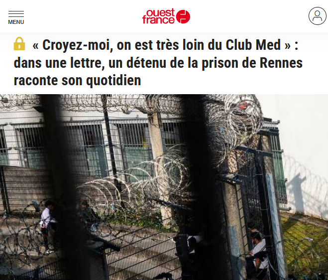 Surpopulation carcérale. Nuits froides. Manque d’activité. Dépressions. Dans une lettre adressée à la rédaction d’Ouest-France, un prisonnier du centre pénitentiaire de Rennes-Vezin (Ille-et-Vilaine) décrit ses conditions de détention. Un aperçu à travers les barreaux, alors que cette prison est frappée par une vague de décès sans précédent.