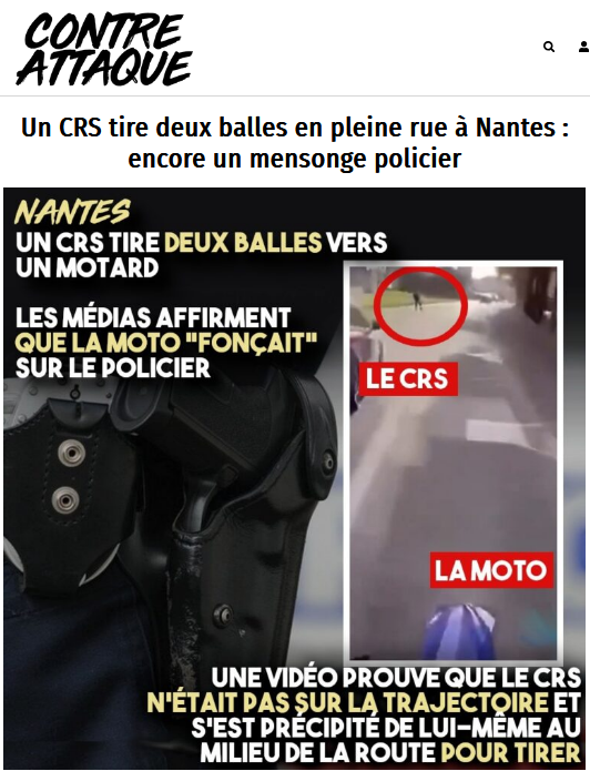 La presse assurait que le CRS défendait sa vie face à un motard qui lui fonçait dessus, une vidéo prouve l’inverse.