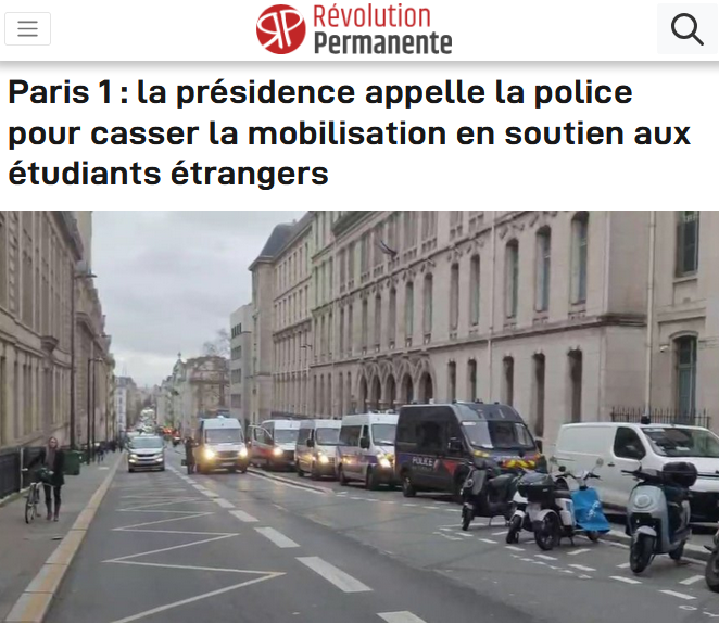 (…) Ni la police ni la présidence ne nous empêcherons de nous mobiliser, la lutte contre ses projets de sélection et de préférence nationale à l’université continue !