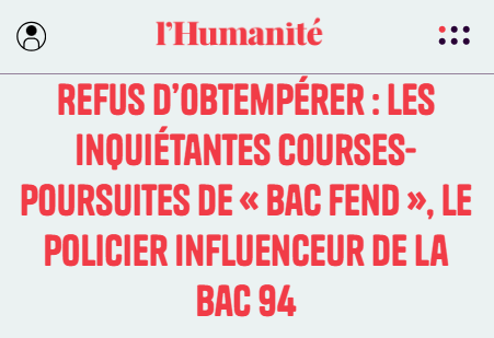 (…) Le policier diffuse des courses-poursuites où les pointes à plus de 100 km/h en centre-ville sont monnaie courante, et le trafic infernal du périphérique un circuit où tutoyer les 160 km/h, en dépit des risques associés à de telles vitesses.
