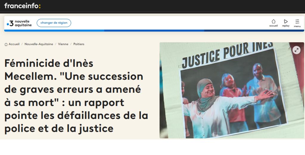 L’Inspection générale de la Justice vient de publier un rapport sur les différences défaillances de la police et du parquet poitevins, dans l’affaire de la mort d’Inès Mecellem. La jeune femme avait été poignardée à son domicile le 8 septembre dernier après avoir déposé plusieurs plaintes.