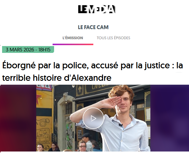 Militant LGBT de 27 ans, Alexandre perd un œil lors d’une intervention policière à Marseille le 1ᵉʳ février 2024, en marge d’un rassemblement contre une conférence LGBT-phobe. Alors qu’il porte plainte contre le policier qui l’a frappé, la procédure se retourne contre lui : il est désormais poursuivi pour « violences sur personne dépositaire de l’autorité publique ».