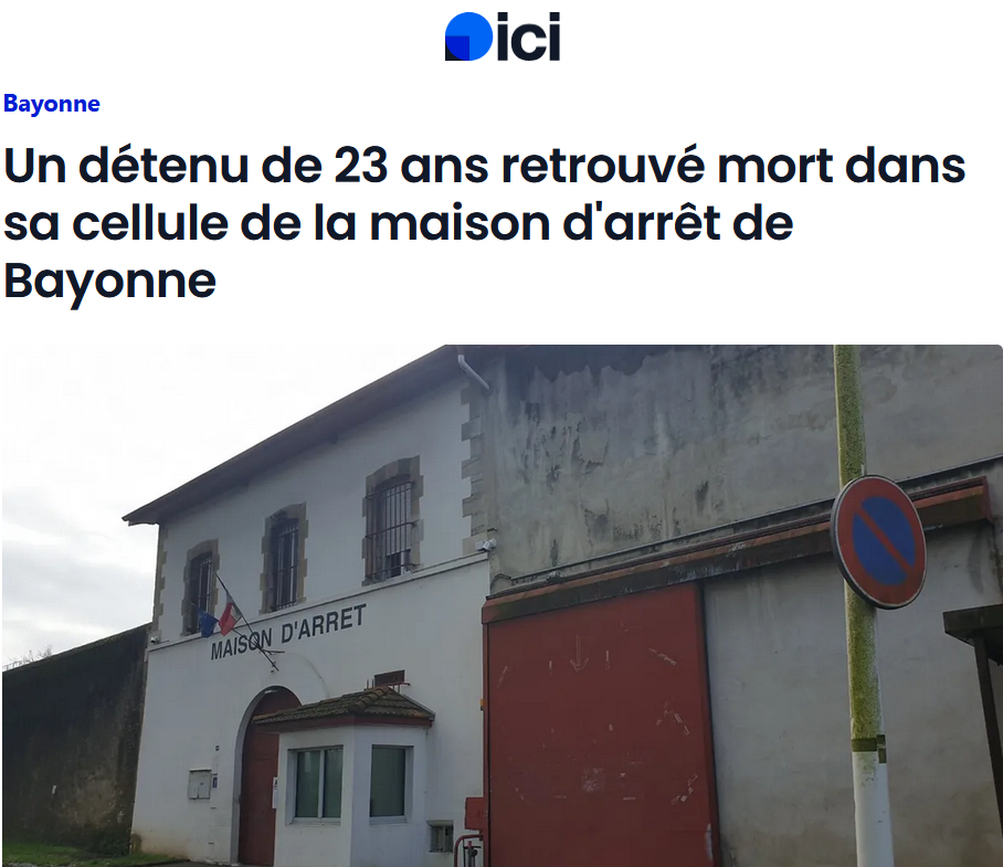 Un jeune homme de 23 ans, incarcéré à la maison d’arrêt de Bayonne, dans les Pyrénées-Atlantiques, a été retrouvé mort ce vendredi 20 mars. Il s’est pendu dans sa cellule. Une enquête a été ouverte.