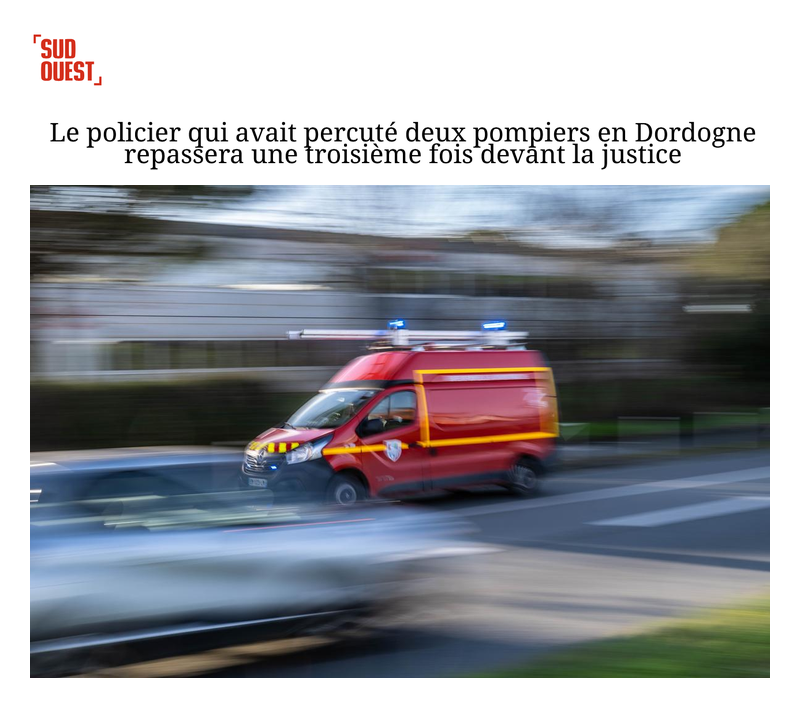 Renvoyé devant le tribunal correctionnel de Bergerac, ce vendredi 27 mars, après l’échec de sa comparution sur reconnaissance préalable de culpabilité (CRPC) en décembre 2025, le policier qui avait percuté deux pompiers sur la RN 21 à Douville, le 6 juin, devra une nouvelle fois se présenter à la barre dans les mois qui viennent.