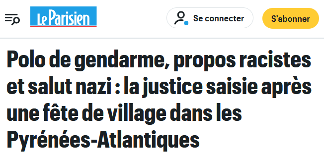 Une vidéo filmée le 14 mars à Guiche (Pyrénées-Atlantiques) montre deux hommes en polo de gendarme tenir des propos racistes et faire un salut nazi.