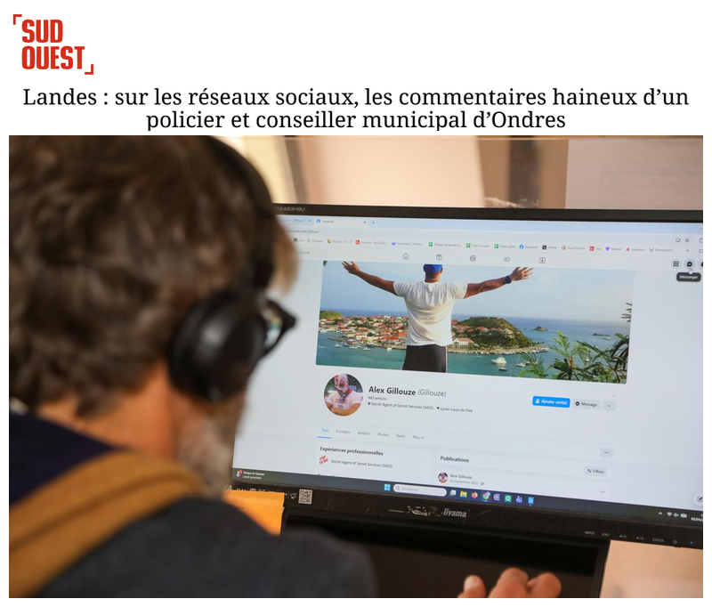 Interrogé sur ses publications sur les réseaux sociaux Facebook et X (ex-Twitter), sous pseudonyme, Alexandre Gilloir, fraîchement élu au Conseil municipal d’Ondres, a ensuite fait disparaître ses messages