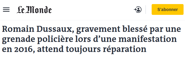 Le 24 novembre 2018, alors qu’une manifestation de « gilets jaunes » avait lieu à Paris, Maxime W., 29 ans, avait été mutilé dans l’explosion d’une grenade lancée par un CRS, se voyant prescrire 21 jours d’incapacité totale de travail (ITT).