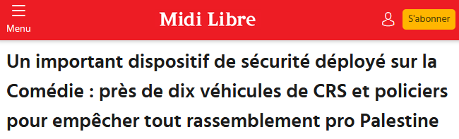 la préfecture de l’Hérault a mis en place un dispositif pour empêcher toute manifestation pro-palestinienne non déclarée.