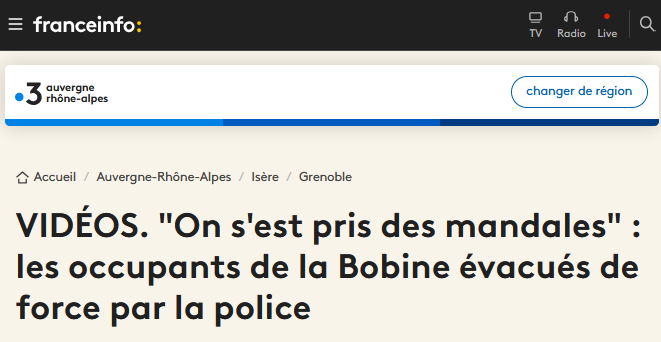 (…) Peu avant 10 heures, un important dispositif de police, avec près d’une cinquantaine de CRS et une douzaine de fourgons, a été déployé aux abords du bâtiment situé à proximité du centre-ville de Grenoble, et occupé depuis le 18 septembre dernier par le mouvement Bloquons Tout.
