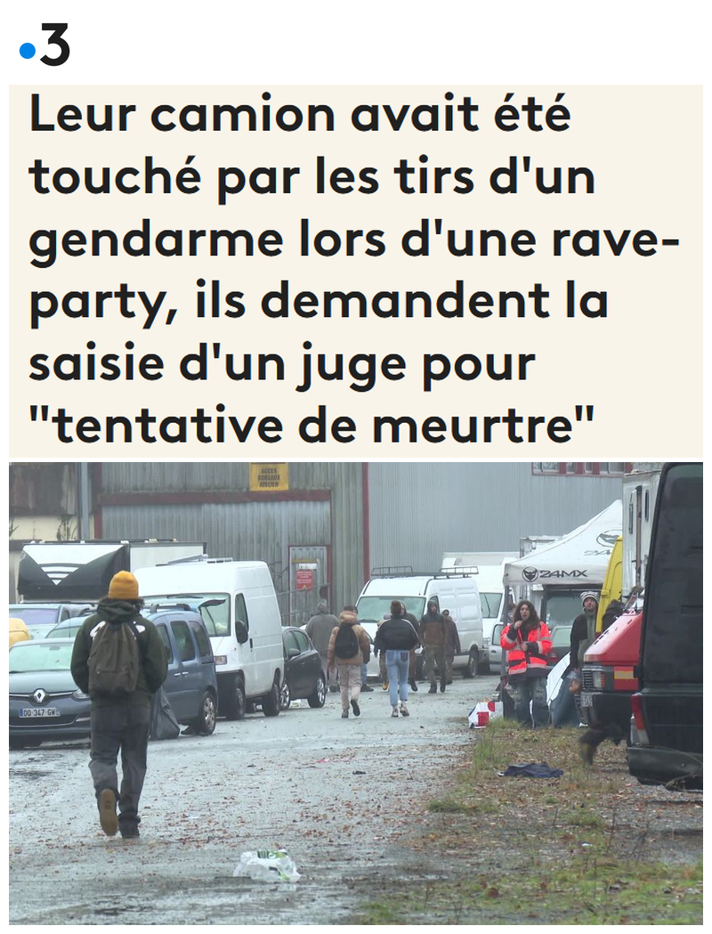 Victor, le conducteur du camion a lui nié tout refus d’obtempérer, disant avoir été visé par les tirs alors qu’il sortait du site de la rave party au milieu des gaz lacrymogènes et du vacarme des explosions de grenades.